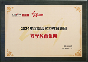 万学集团凭借在社会价值贡献、教学实际效果、教育创新成果、教学技术水平、教研团队水平和教育资源实力等多项指标的显著领先优势,荣膺“2023年度品牌实力教育集团”。